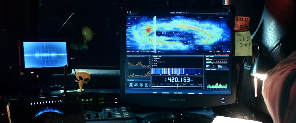 Personal tensions in the claustrophobic confines of the vehicle begin to surface when… something happens… Their tiny umbrella-like dishes detect a signal on the 1420 megahertz wavelength, a long-favoured SETI frequency. But when they contact colleagues with access to a larger telescope, the signal isn’t verified. And then disappears.